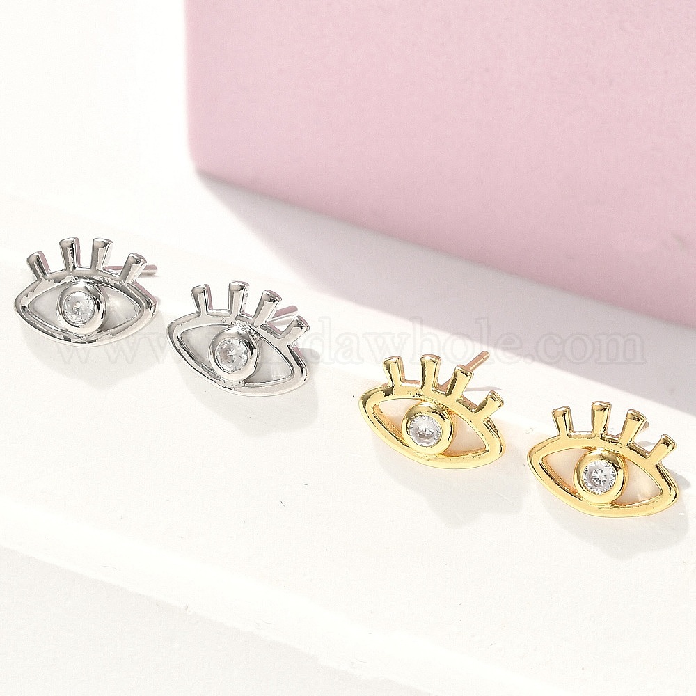 Серьги-гвоздики из латуни с микропрозрачным кубическим цирконием, долговечный, без свинца и без кадмия