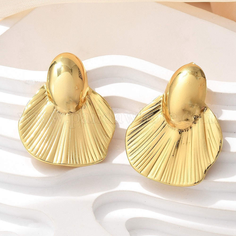 • Настоящее золото 18K 304 из нержавеющей стали серьги, ионное покрытие (ip), вентилятор, реальный 18 k позолоченный, 37.5x30 мм