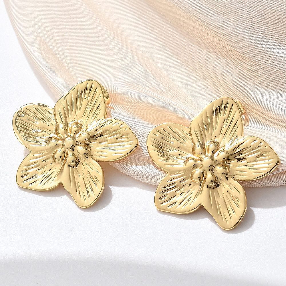 • Настоящее золото 18K 304 серьги-гвоздики из нержавеющей стали для женщин, ионное покрытие (ip), цветок, реальный 18 k позолоченный, 28.5x30 мм
