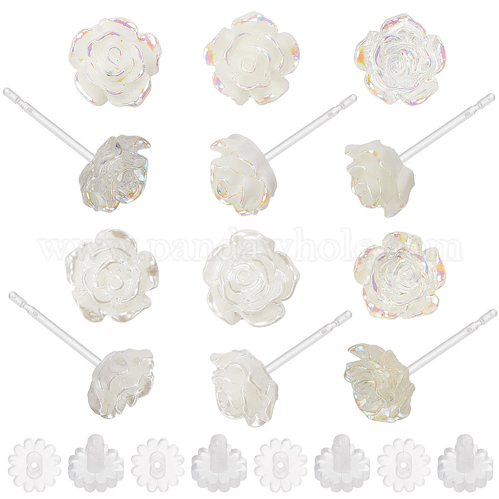 12 пары 6 стили серьги-гвоздики из смолы, цветок розы