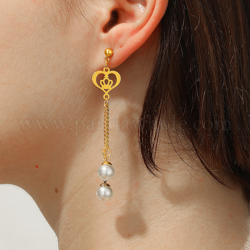 Ретро-серьги-кисточки в форме сердца 201 из нержавеющей стали, с имитацией жемчуга