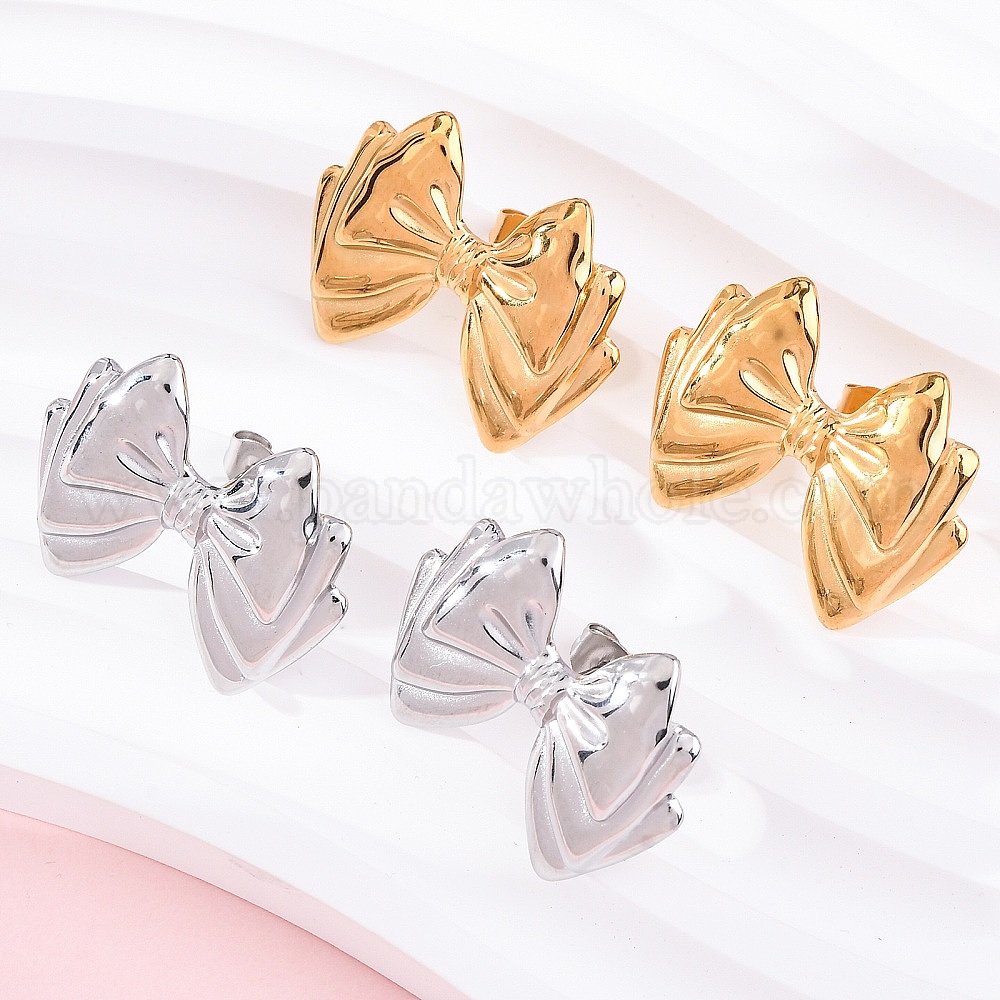 304 серьги-гвоздики из нержавеющей стали для женщин, бантом