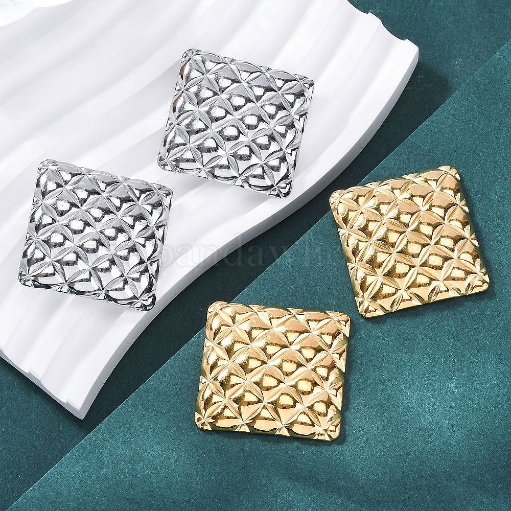 304 серьги-гвоздики из нержавеющей стали для женщин, ромб