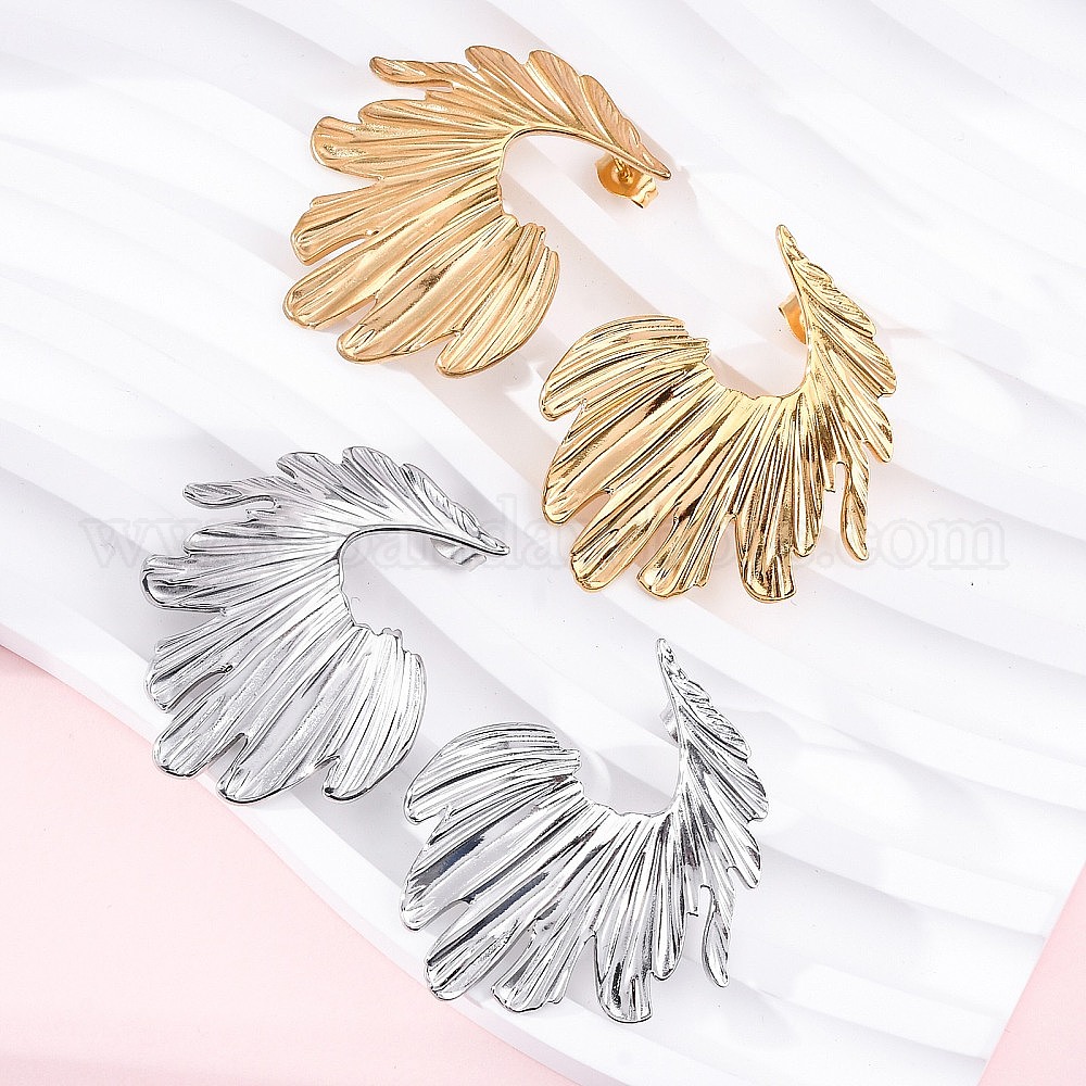 • Золотой 304 серьги-гвоздики из нержавеющей стали для женщин, цветок, золотые, 32x22.5 мм