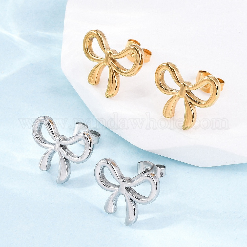 304 серьги-гвоздики из нержавеющей стали для женщин, бантом