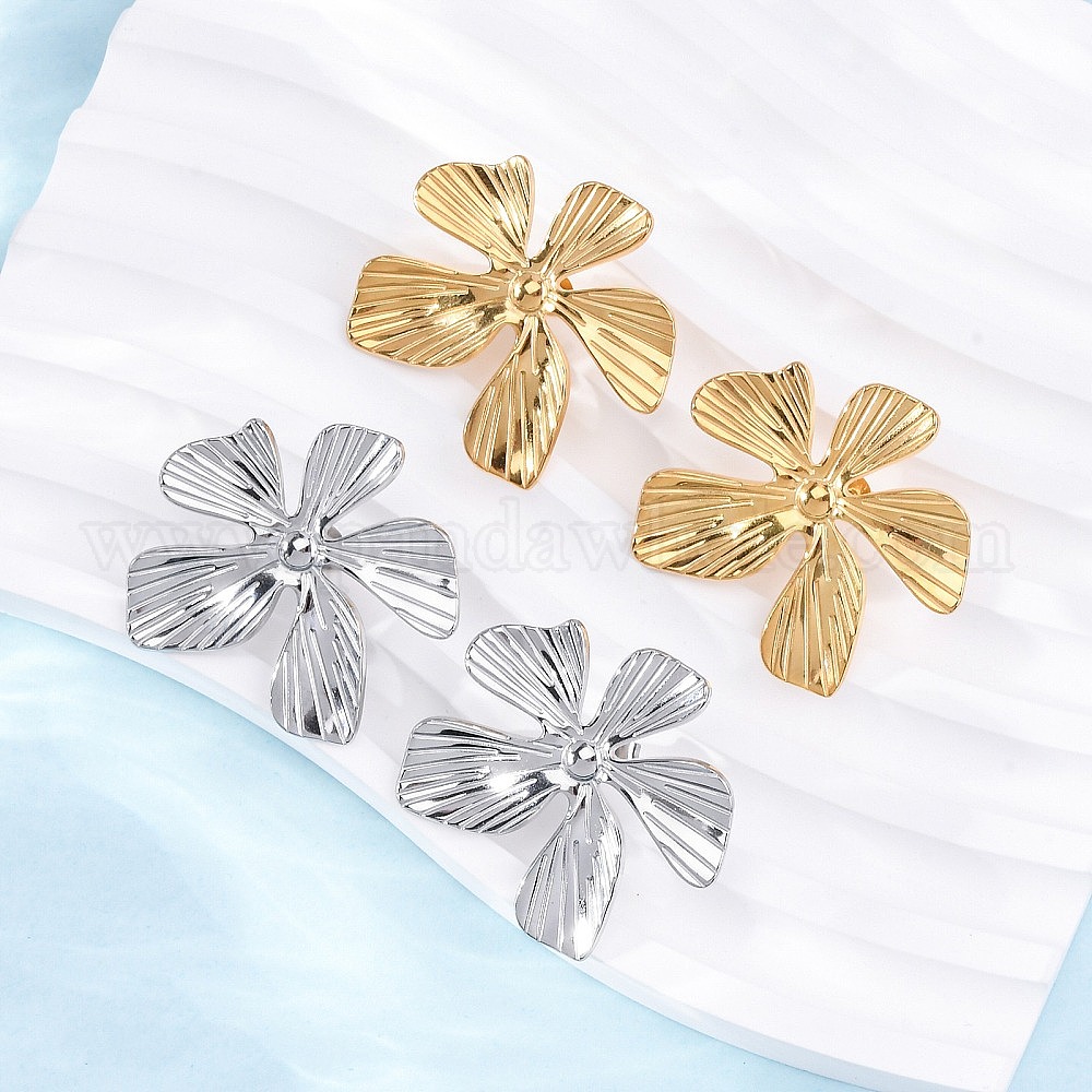 • Золотой 304 серьги-гвоздики из нержавеющей стали для женщин, цветок, золотые, 30.5x33.5 мм