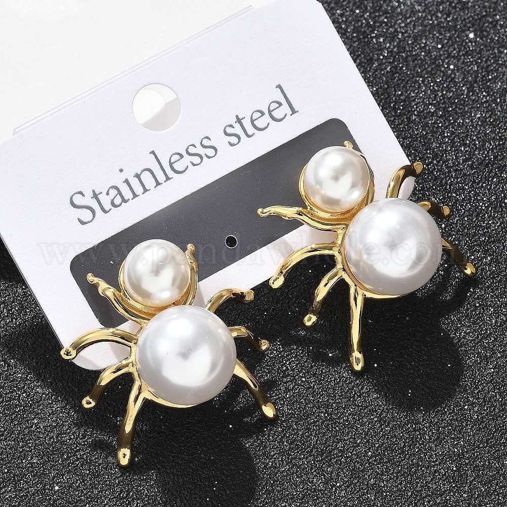 • Золотой 304 серьги-гвоздики из нержавеющей стали и АБС-пластика с имитацией жемчуга в форме паука, ионное покрытие (ip), белые, золотые, 23x25.5 мм