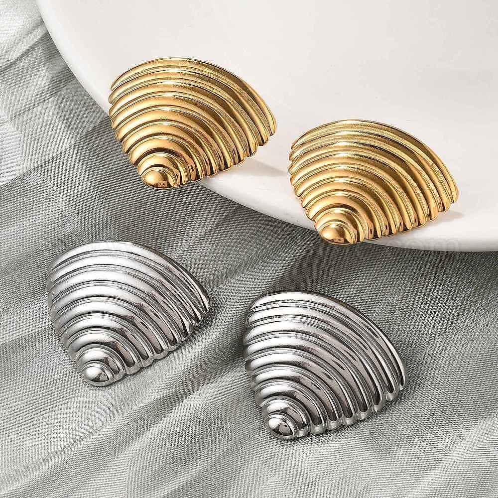 304 женские серьги-гвоздики из нержавеющей стали, треугольная форма раковины