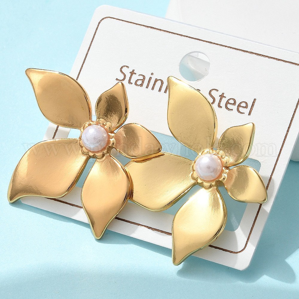 304 серьги-гвоздики в форме цветка из нержавеющей стали и АБС-пластика с имитацией жемчуга, ионное покрытие (ip)