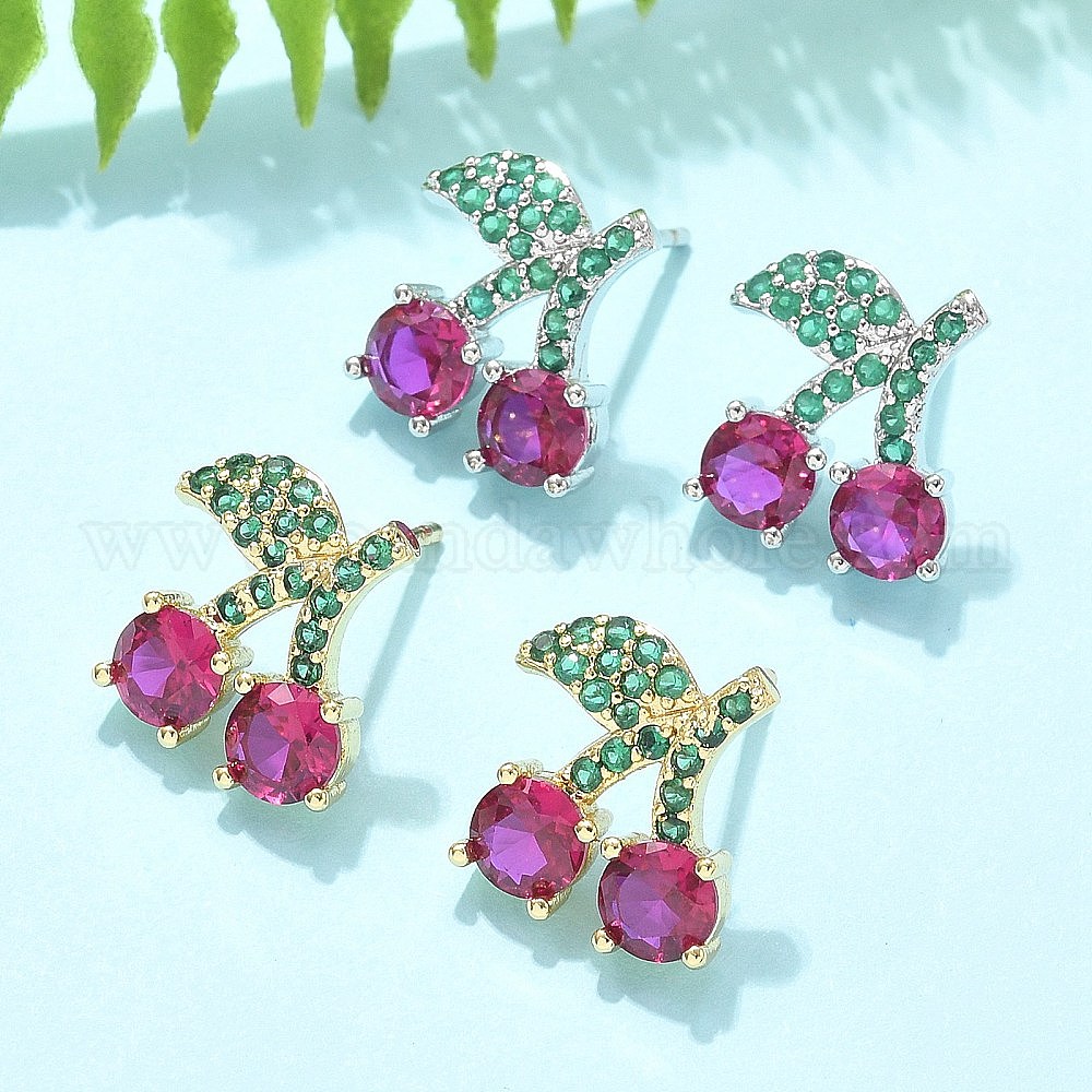 Латунные микро проложить серьги стержня кубического циркония, стойки покрытие, долговечный, без свинца и без кадмия, вишня (0325C6)