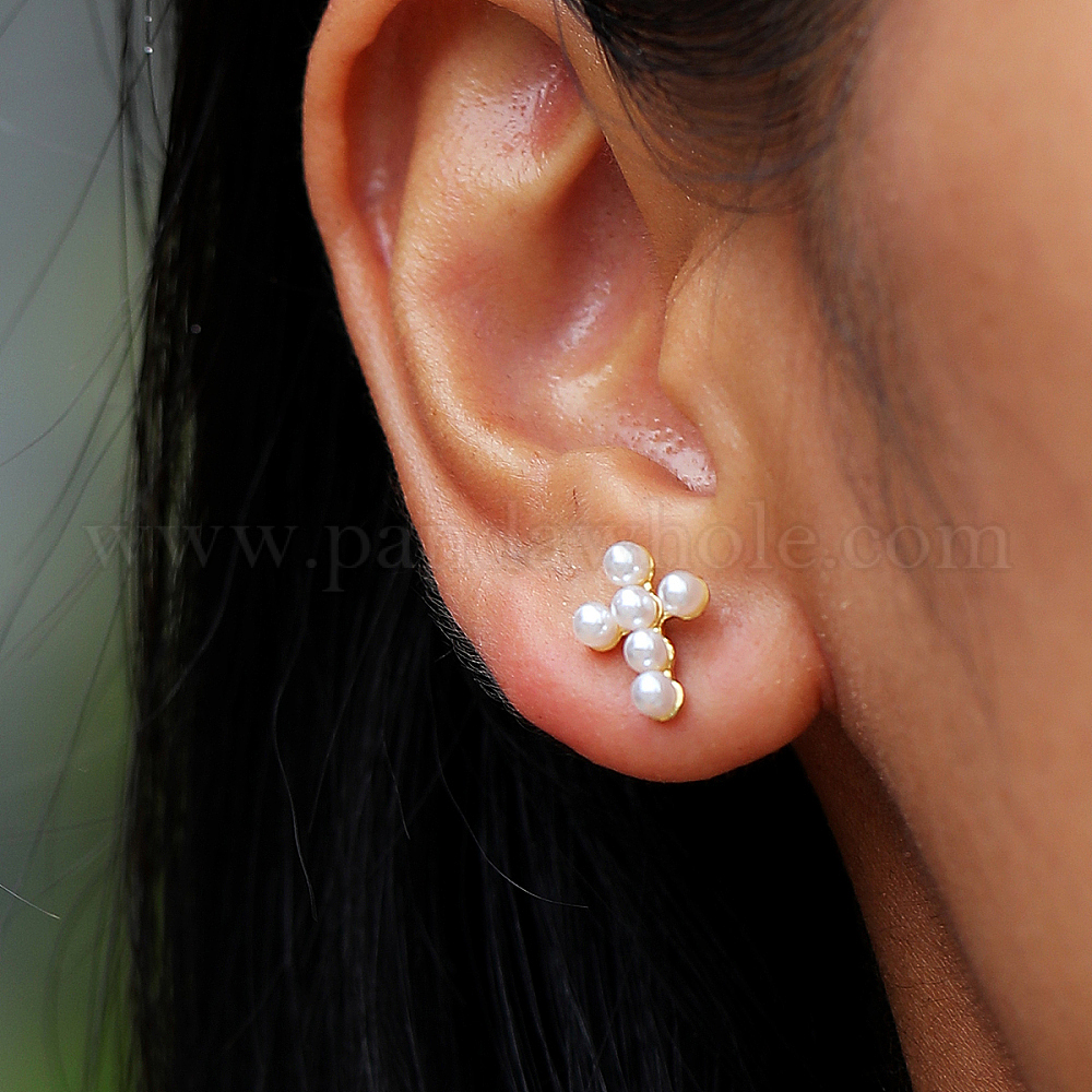 Элегантные серьги-гвоздики из латуни в форме креста, с имитацией жемчуга