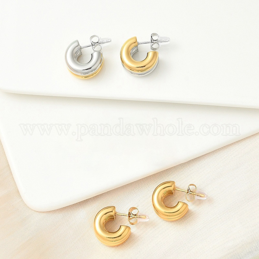 • Настоящее золото 18K 304 из нержавеющей стали серьги, c-образный, реальный 18 k позолоченный, 14.5x9 мм