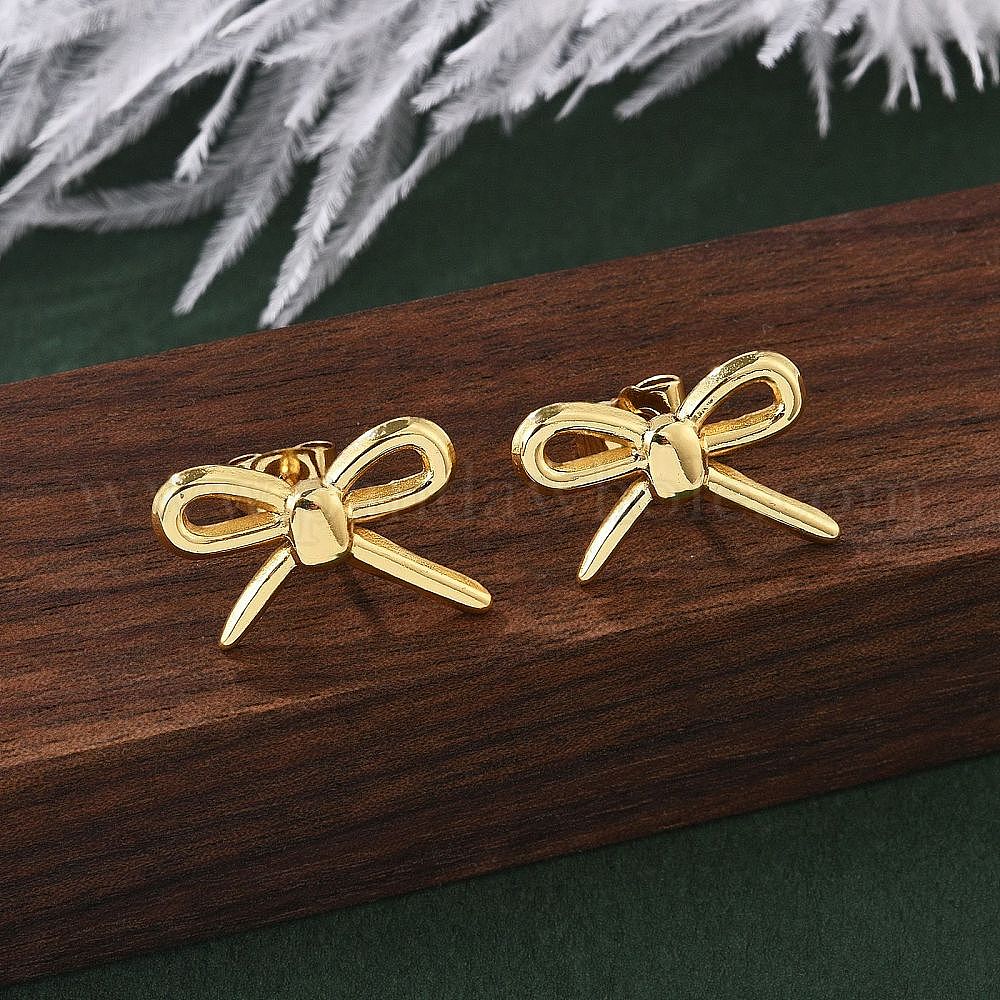 304 серьги-гвоздики из нержавеющей стали для женщин, бантом, ионное покрытие (ip)