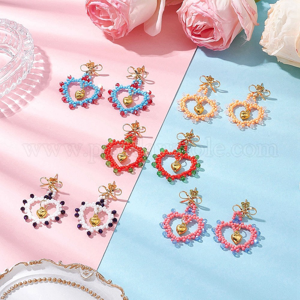 Стеклянные бусины висят серьги, с латунными серьгами, бантом с сердцем, золотые
