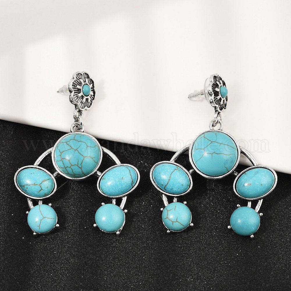• Античное Серебро Серьги-гвоздики из сплава синтетической бирюзы, плоский круглый с овальным, античное серебро, 63x44.5 мм