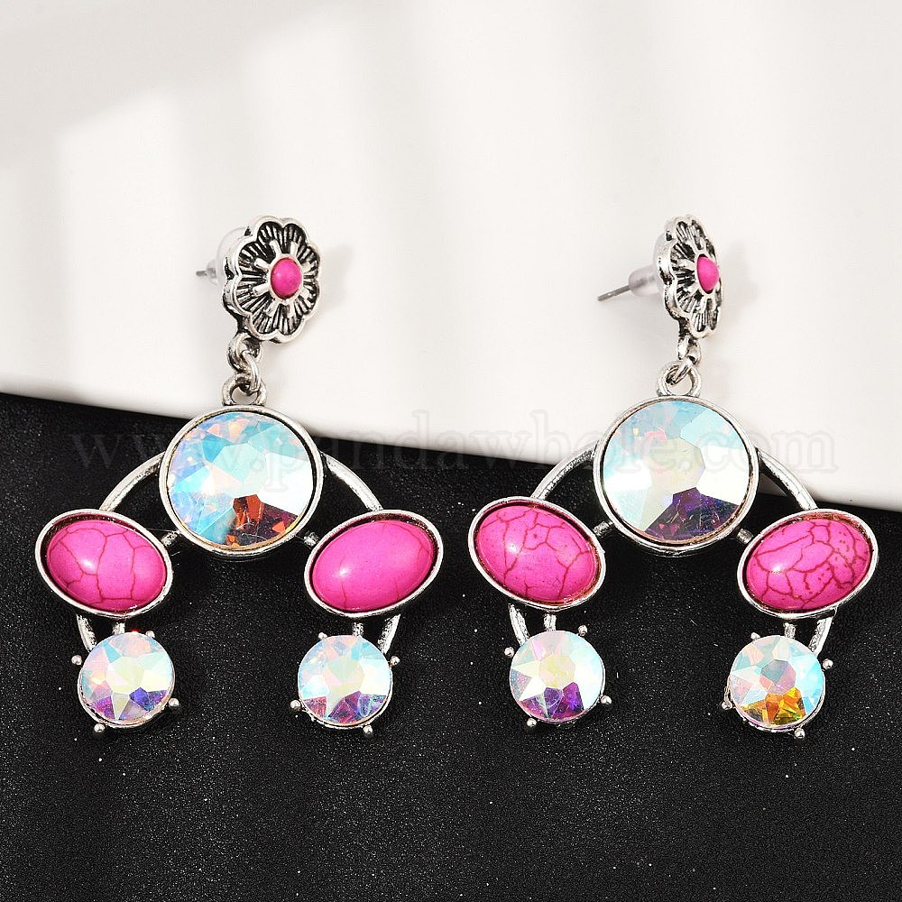 Серьги-гвоздики из сплава синтетической бирюзы, плоский круглый с овальным, со стеклом