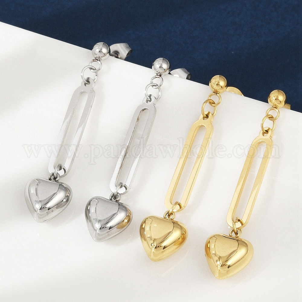 304 серьги-гвоздики в форме сердца из нержавеющей стали, ионное покрытие (ip)