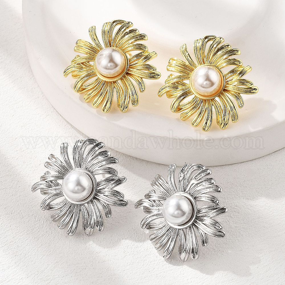 Серьги-гвоздики из латуни, АБС-пластика, искусственный жемчуг, цветок, долговечный, без свинца и без кадмия