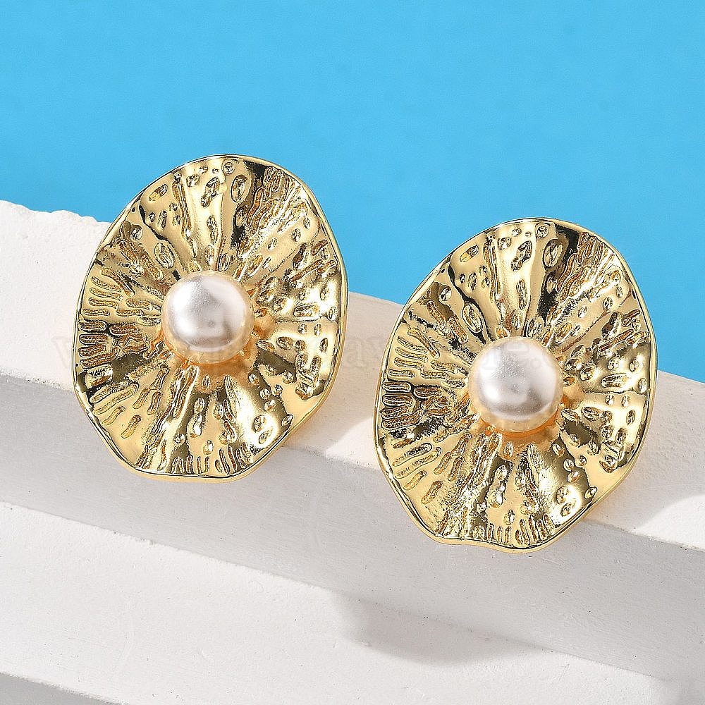 Овальные серьги-гвоздики из латунного АБС-пластика с имитацией жемчуга, долговечный, без свинца и без кадмия
