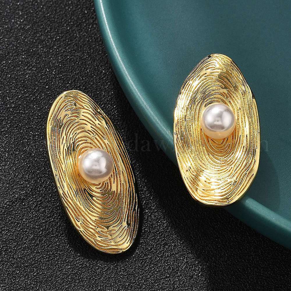 Овальные серьги-гвоздики из латунного АБС-пластика с имитацией жемчуга, долговечный, без свинца и без кадмия