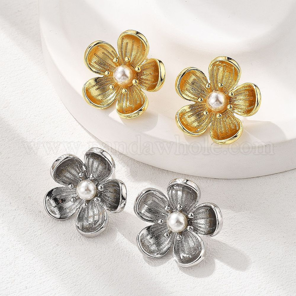 Серьги-гвоздики из латуни, АБС-пластика, искусственный жемчуг, цветок, долговечный, без свинца и без кадмия (032D66)