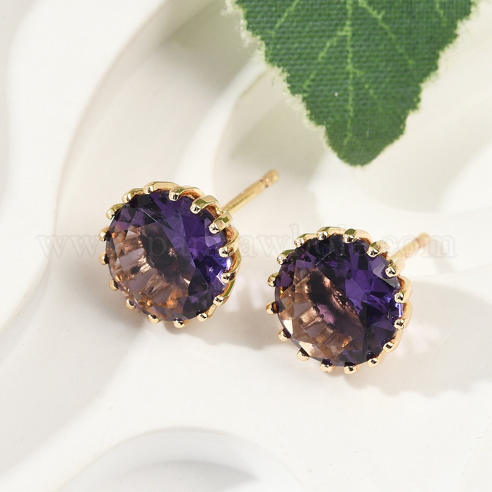 • Золотой Плоские круглые латунные стеклянные серьги-гвоздики, без кадмия и без свинца, долговечный, стойки покрытие, золотые, 9 мм