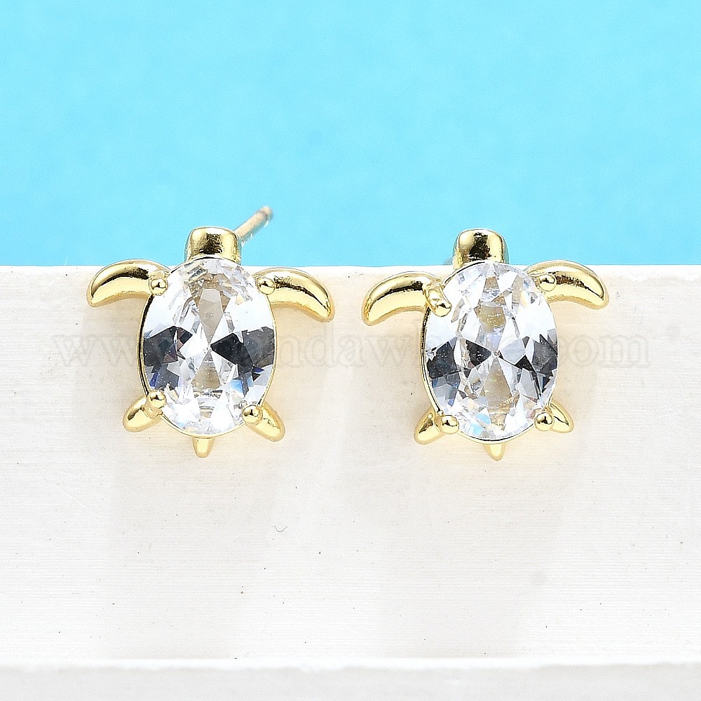 • Tortoise Серьги-гвоздики из латунного микро-паве, долговечный, без свинца и без кадмия, реальный 18 k позолоченный, черепаха, 10.5x11.5 мм