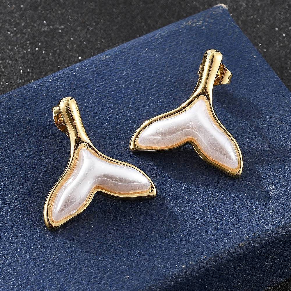 201 серьги-гвоздики в форме хвоста русалки из нержавеющей стали, с 304 штифтами из нержавеющей стали и пластиковой имитацией жемчуга, ионное покрытие (ip)