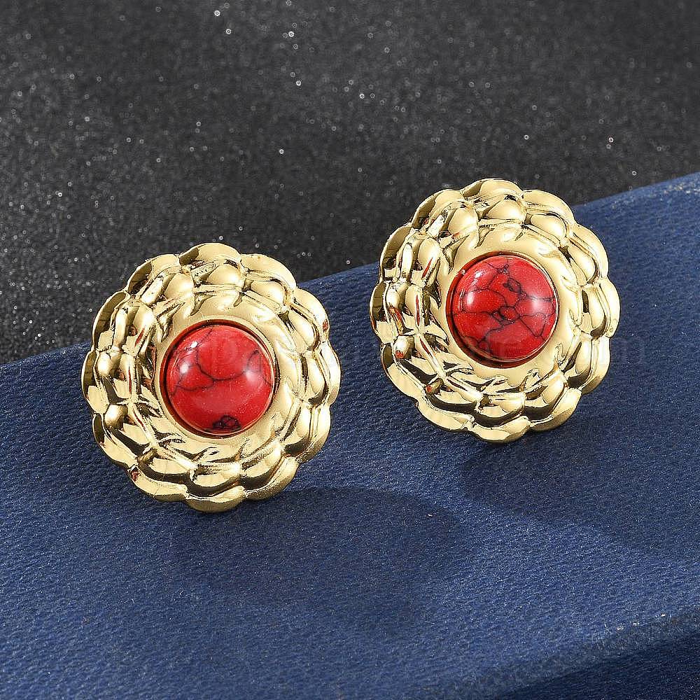201 плоские круглые серьги-гвоздики из нержавеющей стали, с 304 штифтами из нержавеющей стали, с синтетическими бирюзовый, ионное покрытие (ip)