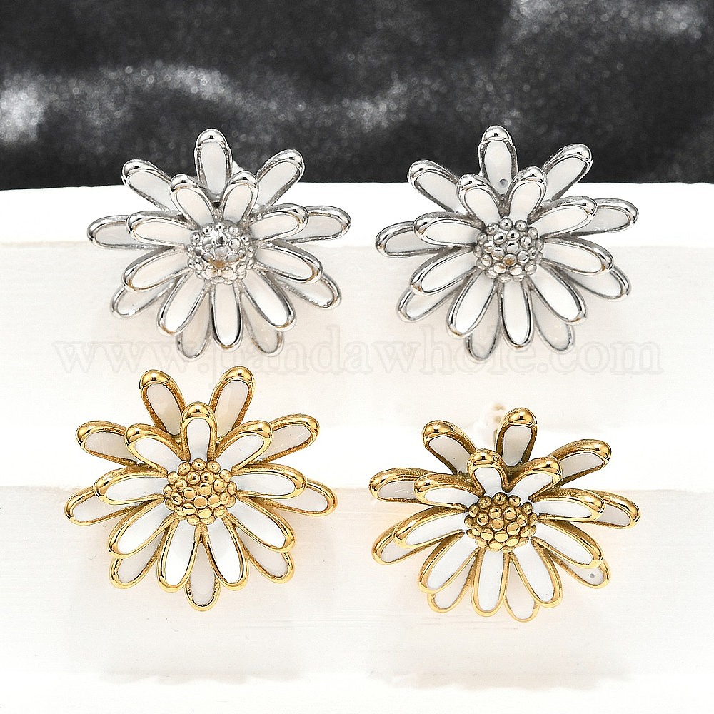 • Нержавеющая Сталь Цвет 304 серьги-гвоздики из нержавеющей стали в виде цветов для женщин, с эмалью, цвет нержавеющей стали, 24 мм