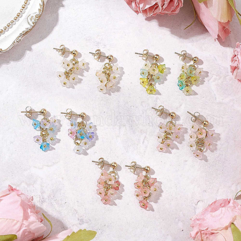 • (52) Непрозрачная лаванда 5 пары цветов 304 серьги-гвоздики из акрила из нержавеющей стали для женщин, золотые, разноцветные, 25.5x12 мм