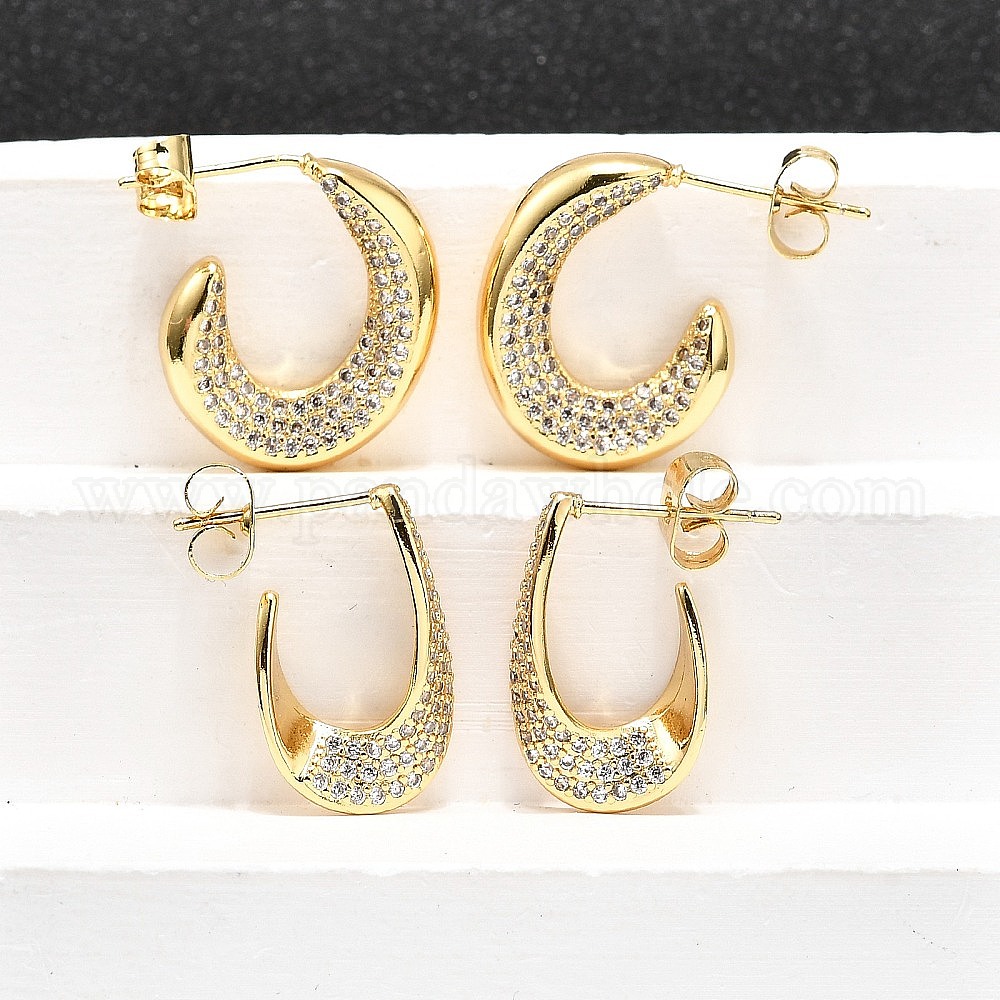 • Настоящее золото 18K Женские серьги-гвоздики из латуни с микропаве и прозрачным кубическим цирконием, c-образный, реальный 18 k позолоченный, 20x18.5x4 мм