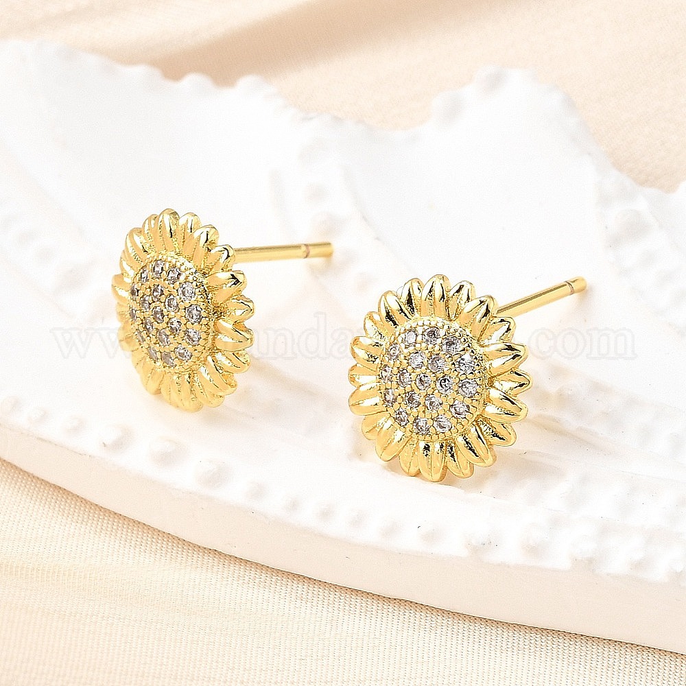 Серьги-гвоздики из латунного микро-паве, без свинца и без кадмия, стойки покрытие, долговечный, подсолнечник