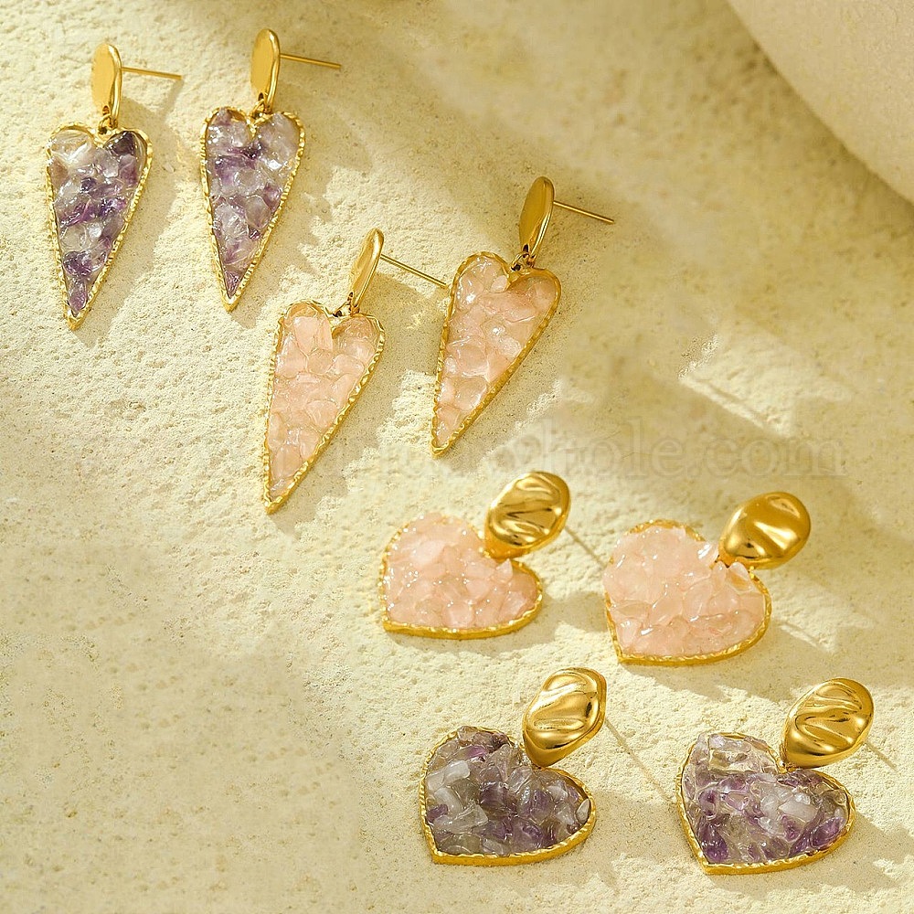 304 серьги-гвоздики в форме сердца из нержавеющей стали, с природных драгоценных камней, реальный 18 k позолоченный