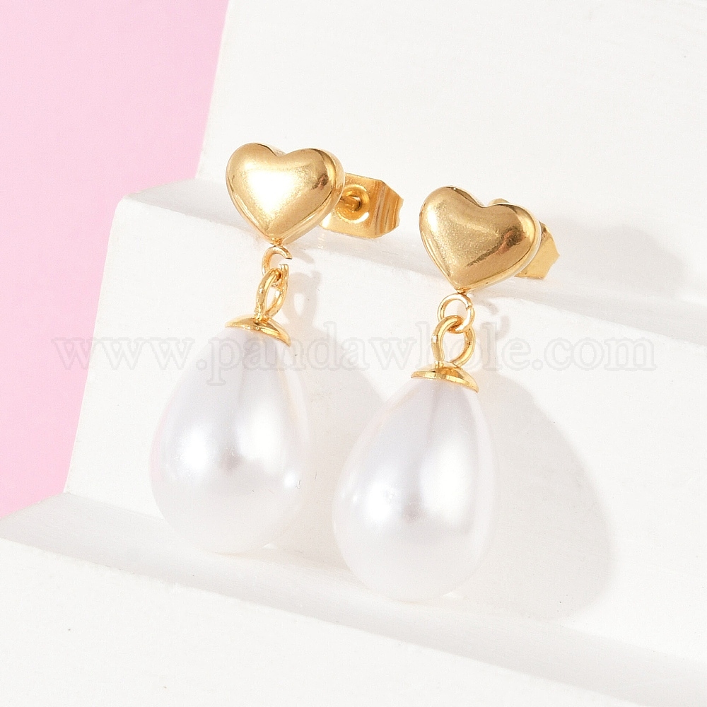 Сердце со слезой 304 серьги-гвоздики из нержавеющей стали для женщины, с пластиковой имитационной жемчужиной