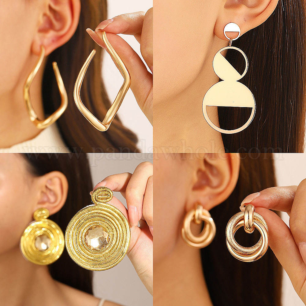 • Light Gold Серьги-гвоздики из сплава с цветочным узором, золотой свет, 38x20 мм
