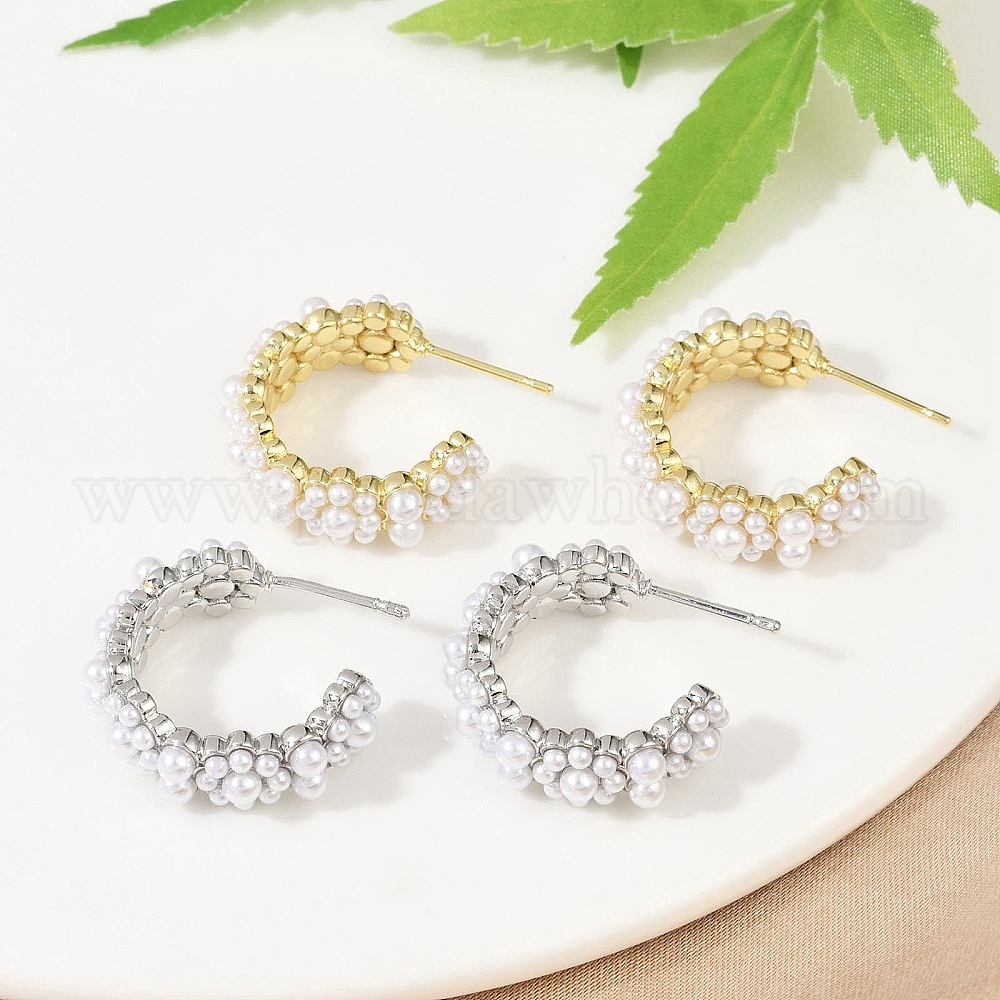 Серьги-гвоздики из искусственного жемчуга с цветком из латуни и АБС-пластика, долговечный, без кадмия и без свинца, стойки покрытие