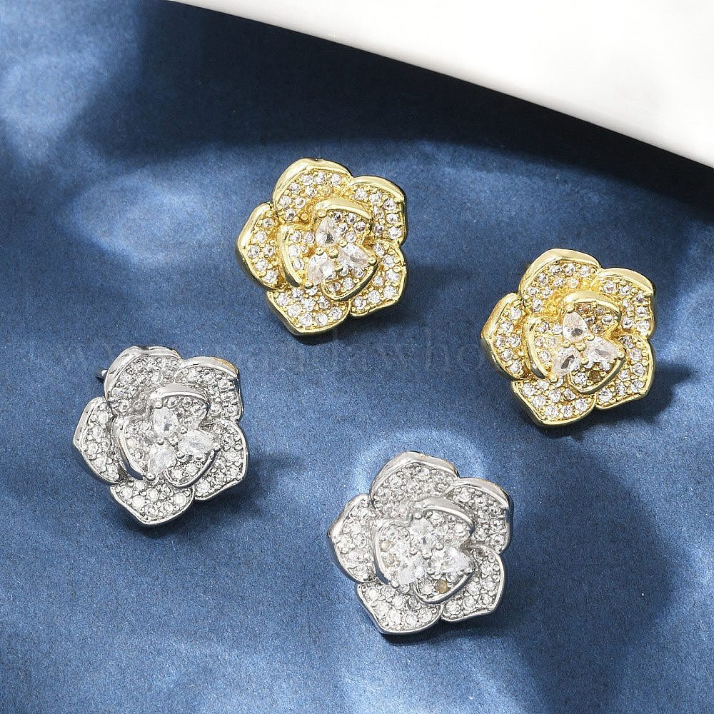 Серьги-гвоздики из латуни с микро-паве и прозрачным фианитом, долговечный, без кадмия и без свинца, стойки покрытие