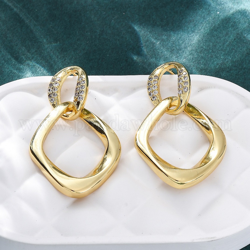 Серьги-гвоздики с ромбами из латуни с микропаве из прозрачных кубических цирконий, без свинца и без кадмия, долговечный, стойки покрытие