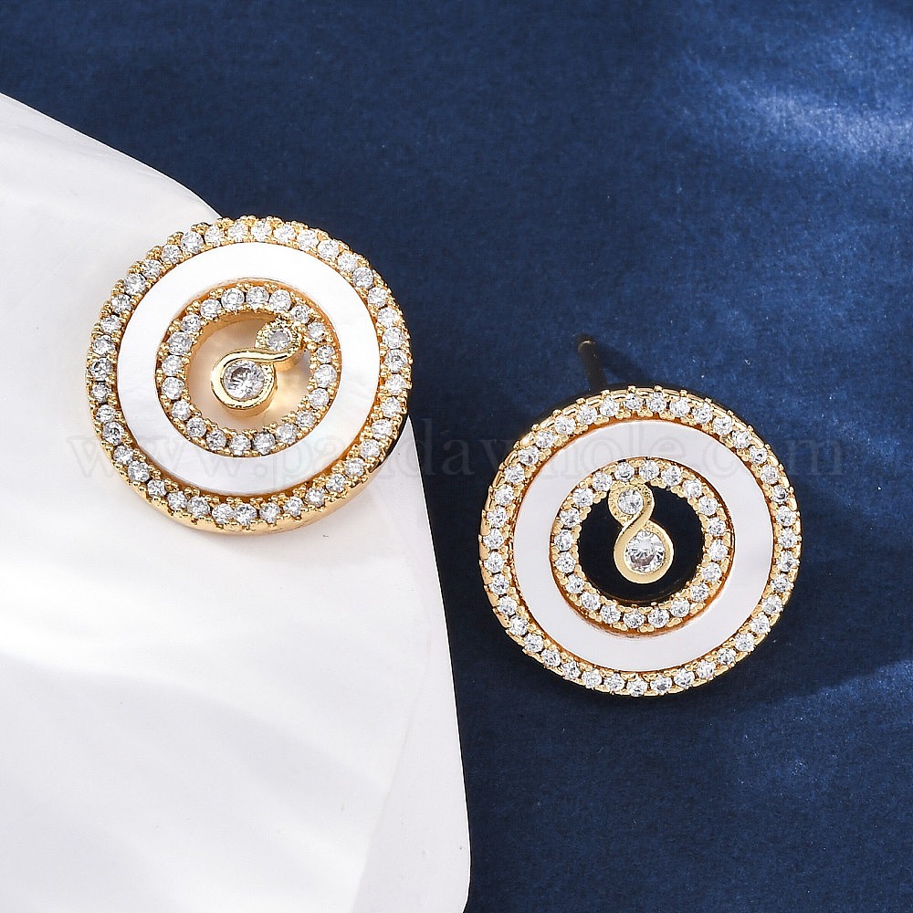 Плоские круглые серьги-гвоздики из латуни с микропаве и цирконием, с уха орехов, с оболочкой, без кадмия и без свинца, стойки покрытие, долговечный