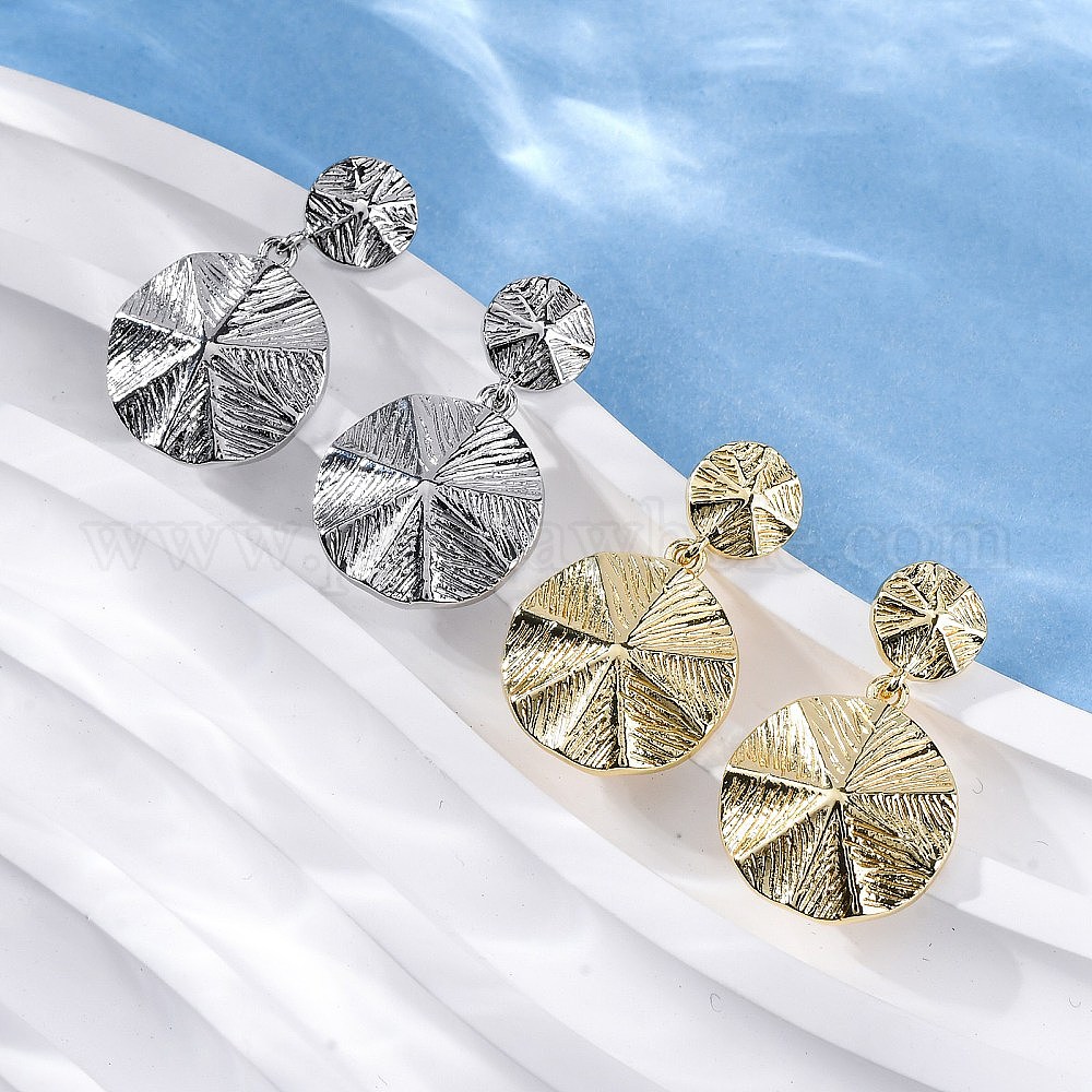 • Платина Плоские круглые латунные серьги-гвоздики, без свинца и без кадмия, долговечный, стойки покрытие, платина, 26x16 мм