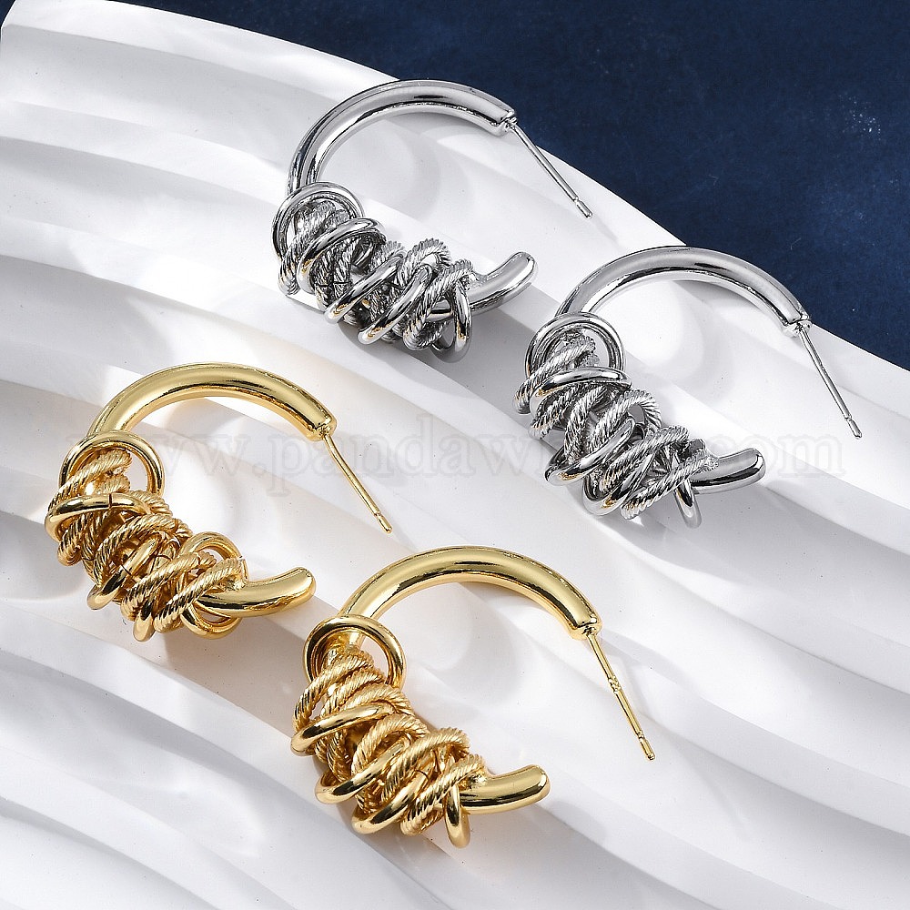 Серьги-гвоздики из латуни в форме буквы С с узлом, без свинца и без кадмия, долговечный, стойки покрытие (0333ZE)