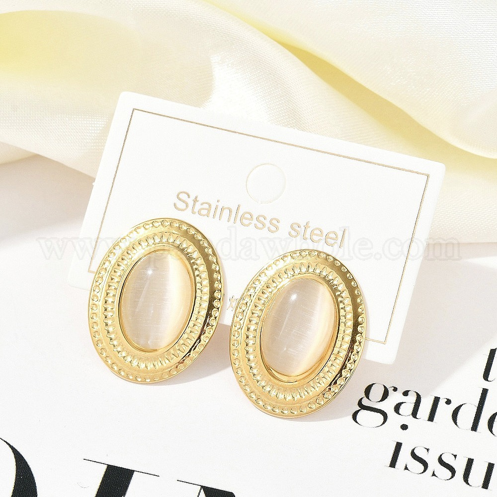 Ионное покрытие (ip) 304 серьги-гвоздики из нержавеющей стали кошачий глаз для женщин, овальные