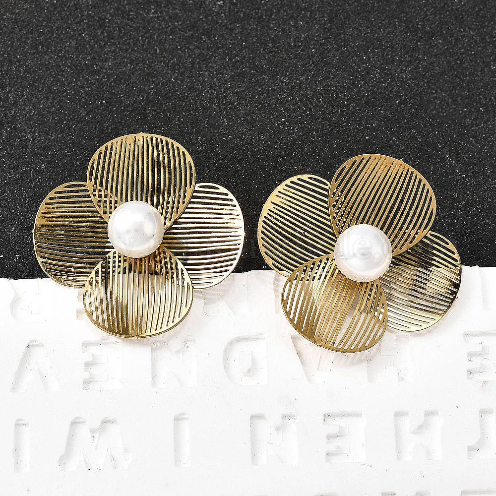 304 серьги-гвоздики из пластика и нержавеющей стали с имитацией жемчуга, цветок, ионное покрытие (ip)