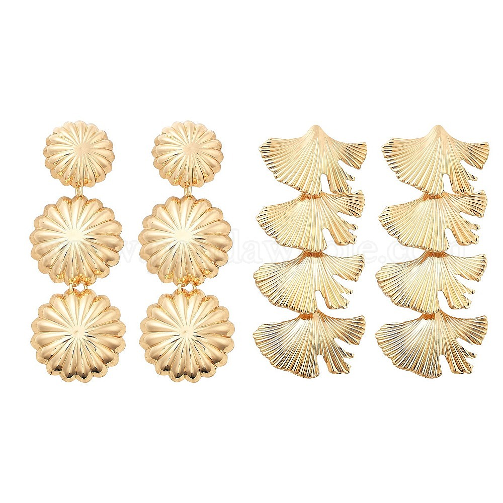 • Лист Сплав мотаться серьги стержня, золотой свет, лист, 74x32 мм