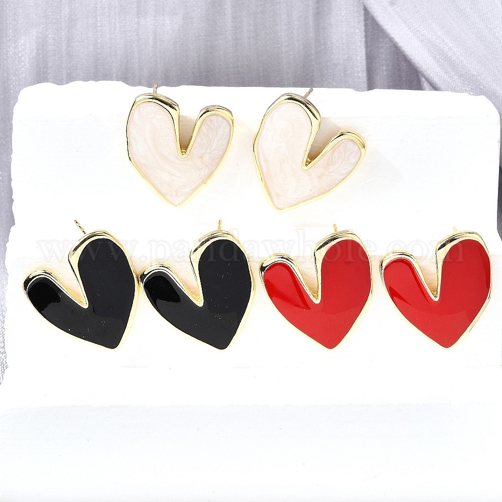 Серьги-гвоздики в форме сердца из латуни, с эмалью, настоящий 18k золотой
