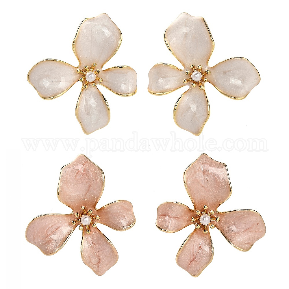 • Розовый Цветок латунь эмаль серьги стержня, с пластиковыми бусинами из искусственного жемчуга, реальный 14 k позолоченный, туманная роза, 29x26 мм