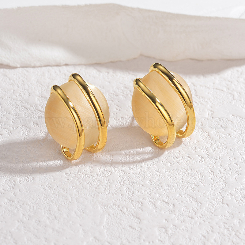 • Золотой 304 серьги-гвоздики с кабошоном из нержавеющей стали «кошачий глаз», круглые, золотые, 18x22 мм