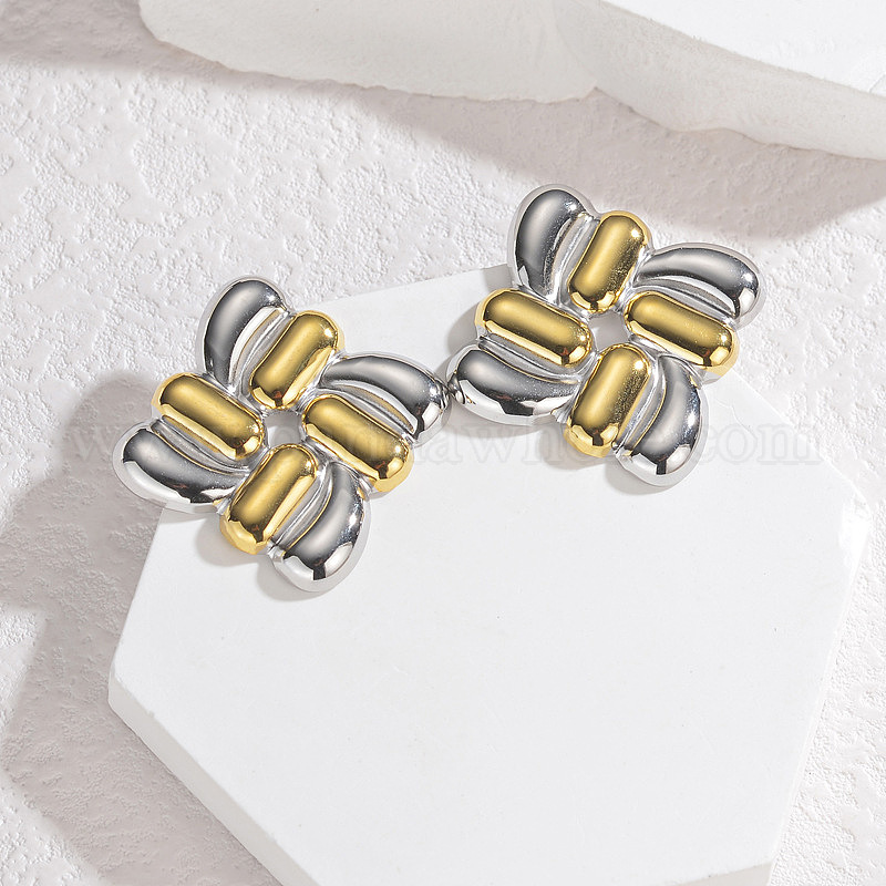 304 двухцветные серьги-гвоздики из нержавеющей стали, квадратный