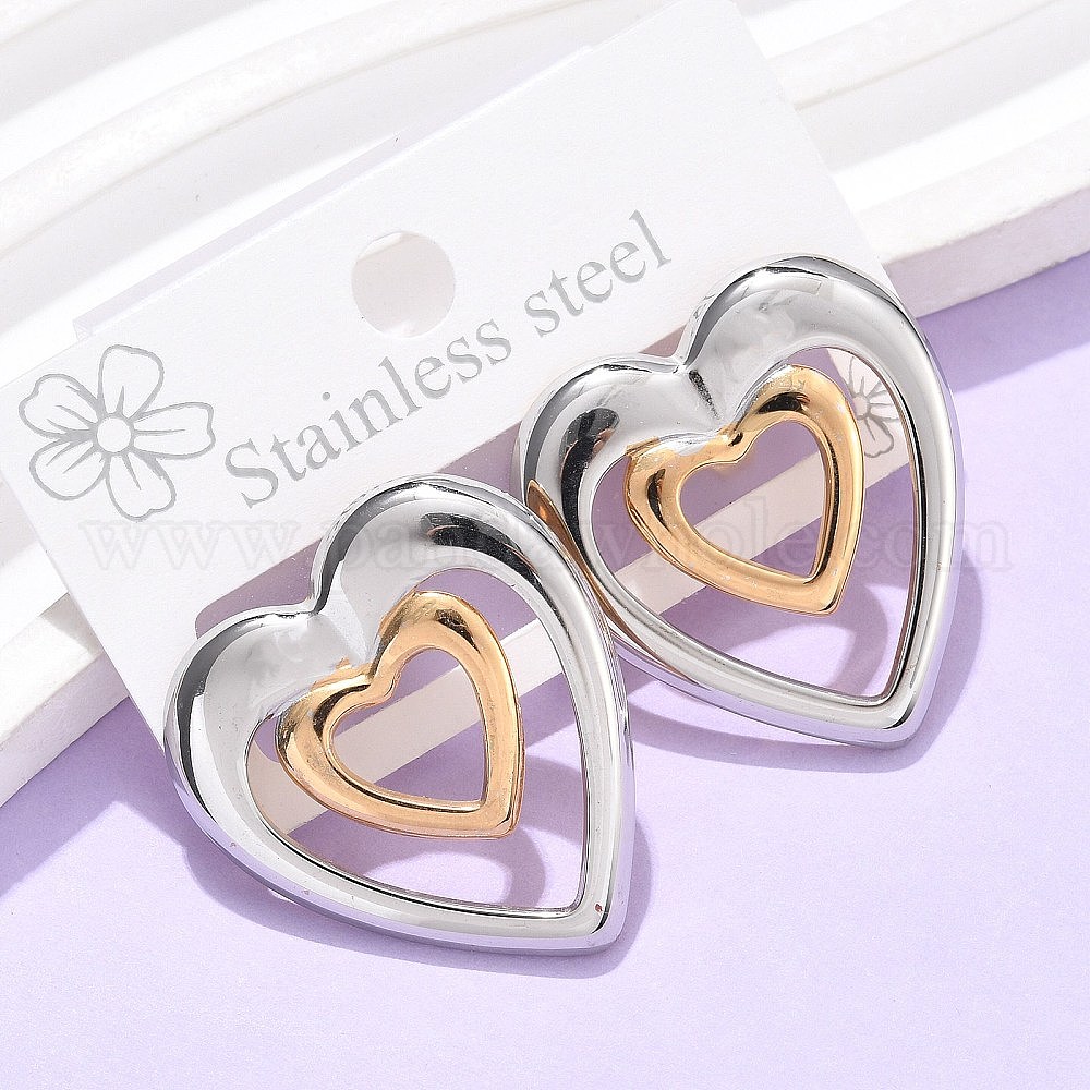 304 двухцветные серьги-гвоздики в форме сердца из нержавеющей стали, ионное покрытие (ip)